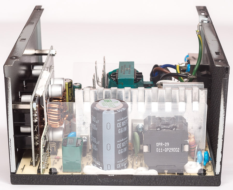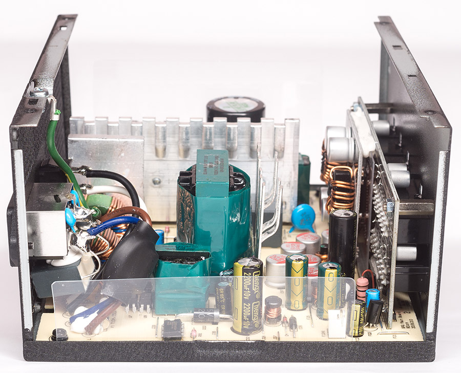 Блок побудований на сучасній платформі CWT: з активним коректором коефіцієнта потужності (APFC) та з широким діапазоном вхідної напруги, з силовим резонансним LLC-перетворювачем та синхронним випрямлячем по лінії +12 В, а також DC/DC-перетворювачами для ліній +5 В та +3,3 В. Аналогічна схемотехніка використовується у «золотих» джерелах живлення.