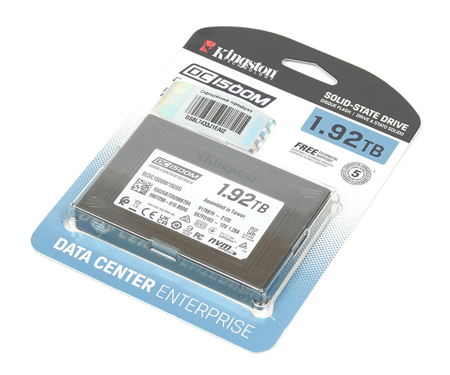 Накопичувач реалізований у формфакторі U.2 (2,5 дюйми, 15 мм), оснащений інтерфейсом PCI-E Gen3, що дозволяє використовувати його у безлічі серверних бекплейнів. Насамперед він розрахований на роль диска змішаних навантажень, на кшталт віртуалізації, кешування вебхостингу, хмарних сервісів, робочих навантажень ERP, CRM, GL, OLAP, OLTP, ERM, BI, EDW та багатьох інших. Клієнт може обрати чотири варіанти місткостей: 960 ГБ, 1,92 ТБ, 3,84 ТБ, 7,68 ТБ. Як представник лінійки Data Center — накопичувач забезпечений п'ятирічним гарантійним терміном експлуатації та безплатною технічною підтримкою від виробника. Kingston сміливо заявляє, що це накопичувач Enterprise-класу із винятковим балансом продуктивності. Чи це так, ми й перевіримо.