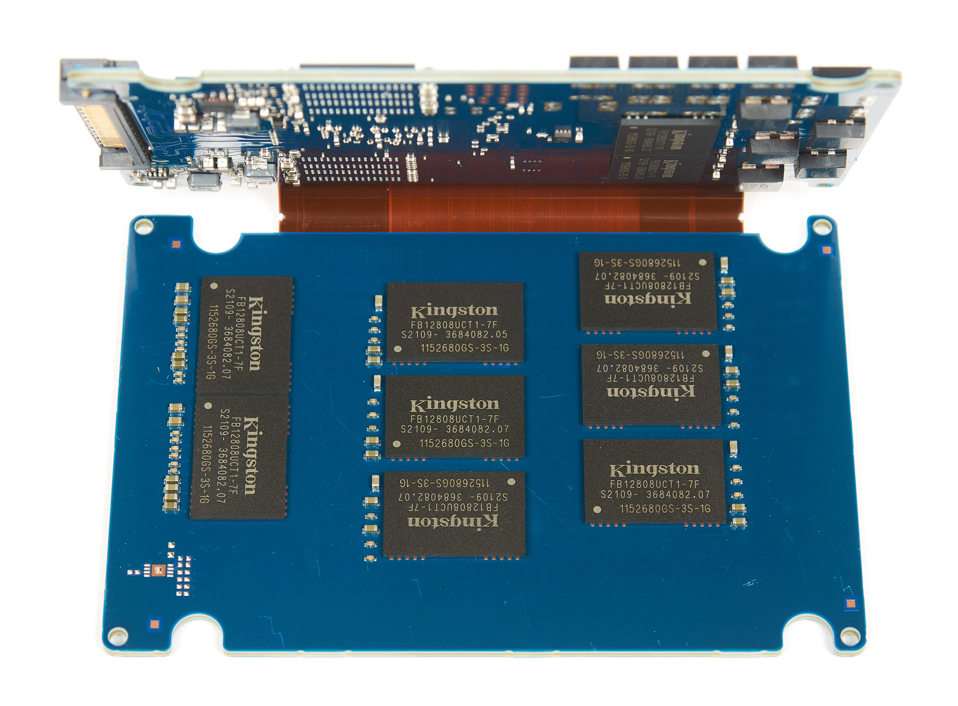 Зовнішня частина допоміжної плати оснащена вісьмома мікросхемами флешпам'яті NAND.