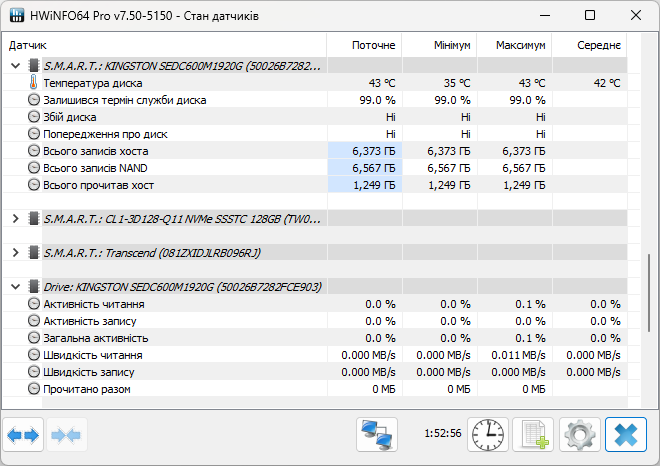 Почнемо з температурного режиму. В простої накопичувач не грівся вище за 43 градуси.