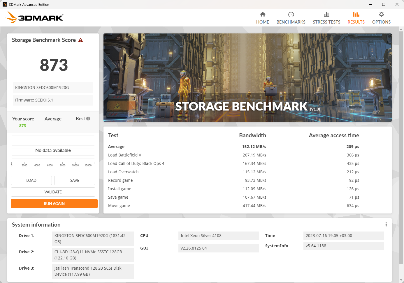 Середній показник склав 152,12 Мбайт/с, а заповнений — 152,86 Мбайт/с, тобто якщо врахувати похибку, то він не втратив показників.