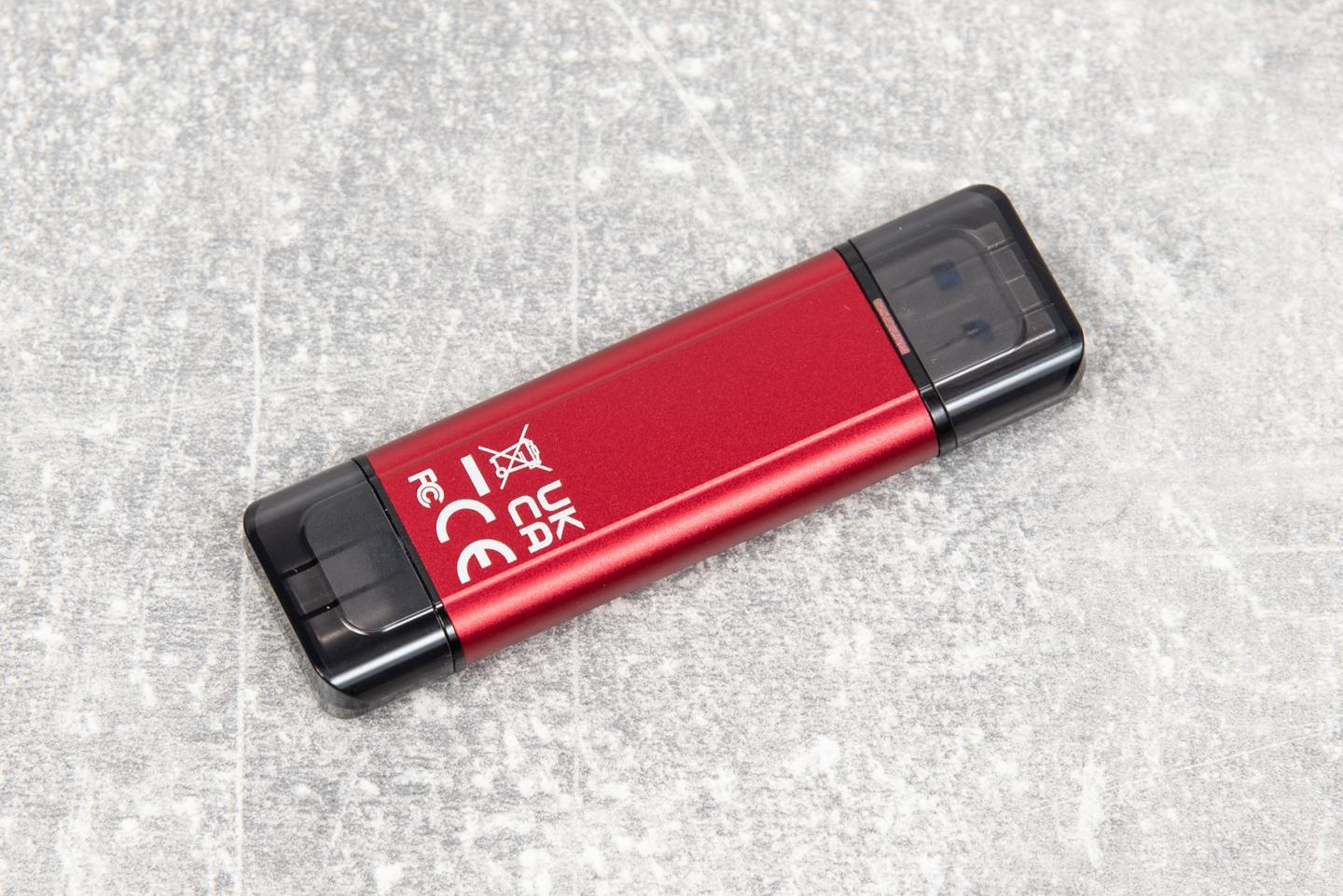 Габарити накопичувача складають 71,85×21,1×8,6 мм, при цьому він важить лише 13 грамів. Корпус виконано з металу, а ковпачки-заглушки конекторів з пластику.