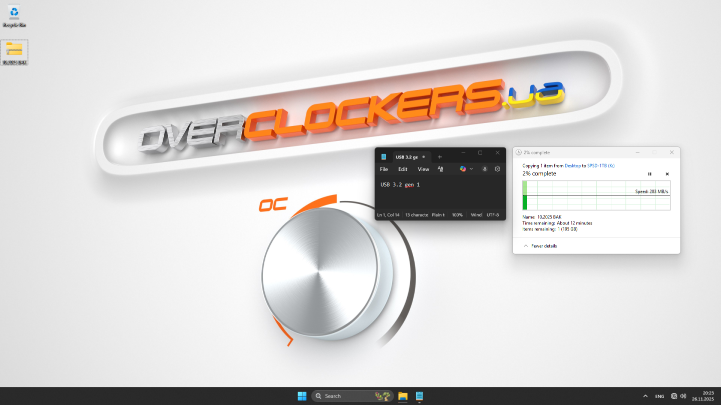 - порожній накопичувач в умовах USB 3.2 Gen 2;