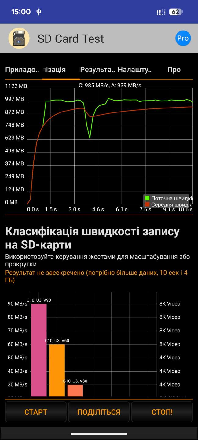 Цей мінітест виконувався на смартфоні Google Pixel 6. Швидкості виявились майже на рівні обіцяних виробником.