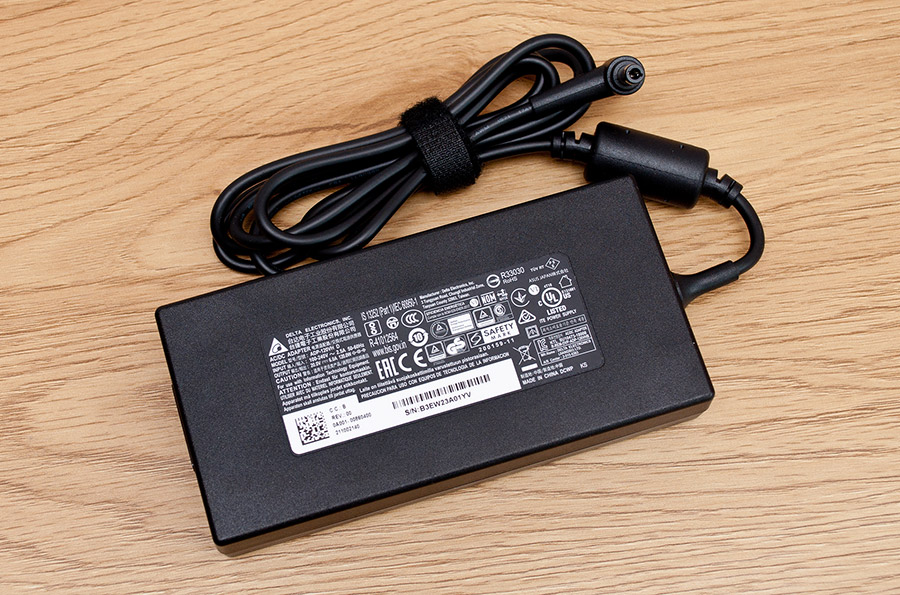 Комплектний блок живлення ADP-120VH виготовлений компанією Delta Electronics. Він забезпечує вихідну напругу 20 В при силі струму 6 А, що відповідає потужності 120 Вт, та розрахований на експлуатацію в побутових мережах змінного струму з частотою 50/60 Гц та напругою від 100 до 240 В. Слід зазначити, що вихідна потужність 120 Вт обрана недарма, але про це поговоримо в практичній частині нашого огляду.