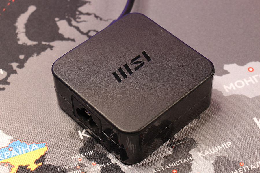 Оскільки відходити далеко від розетки з MSI Claw небажано, то варто придивитися до блоку живлення. Комплектний має потужність 65 Вт, незнімний двометровий кабель USB-C та знімний кабель C5/C6 довжиною 1 метр для підключення до розетки. У сучасному світі набагато зручніше взяти зарядний пристрій з Power Delivery на 100 Вт та декількома USB-роз'ємами, щоб заряджати від нього не тільки Claw, а й ще щось, наприклад, телефон. Навіть сам виробник рекомендує взяти саме 100-ватний блок живлення як джерело для док-станції Claw Nest з урахуванням можливого споживання підключеної периферії.