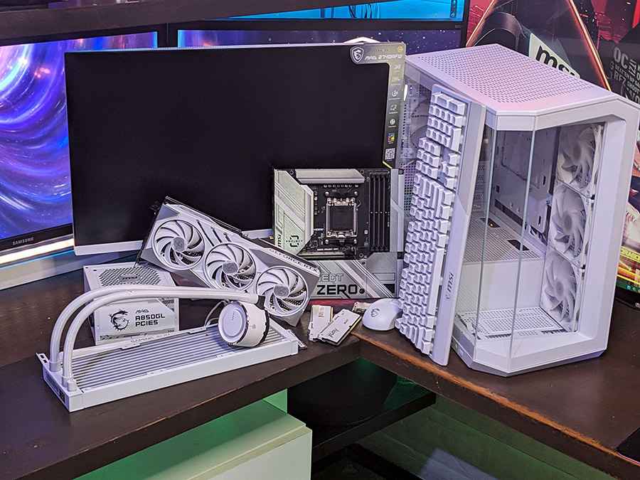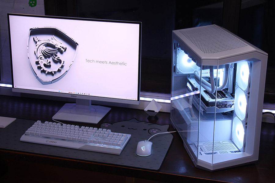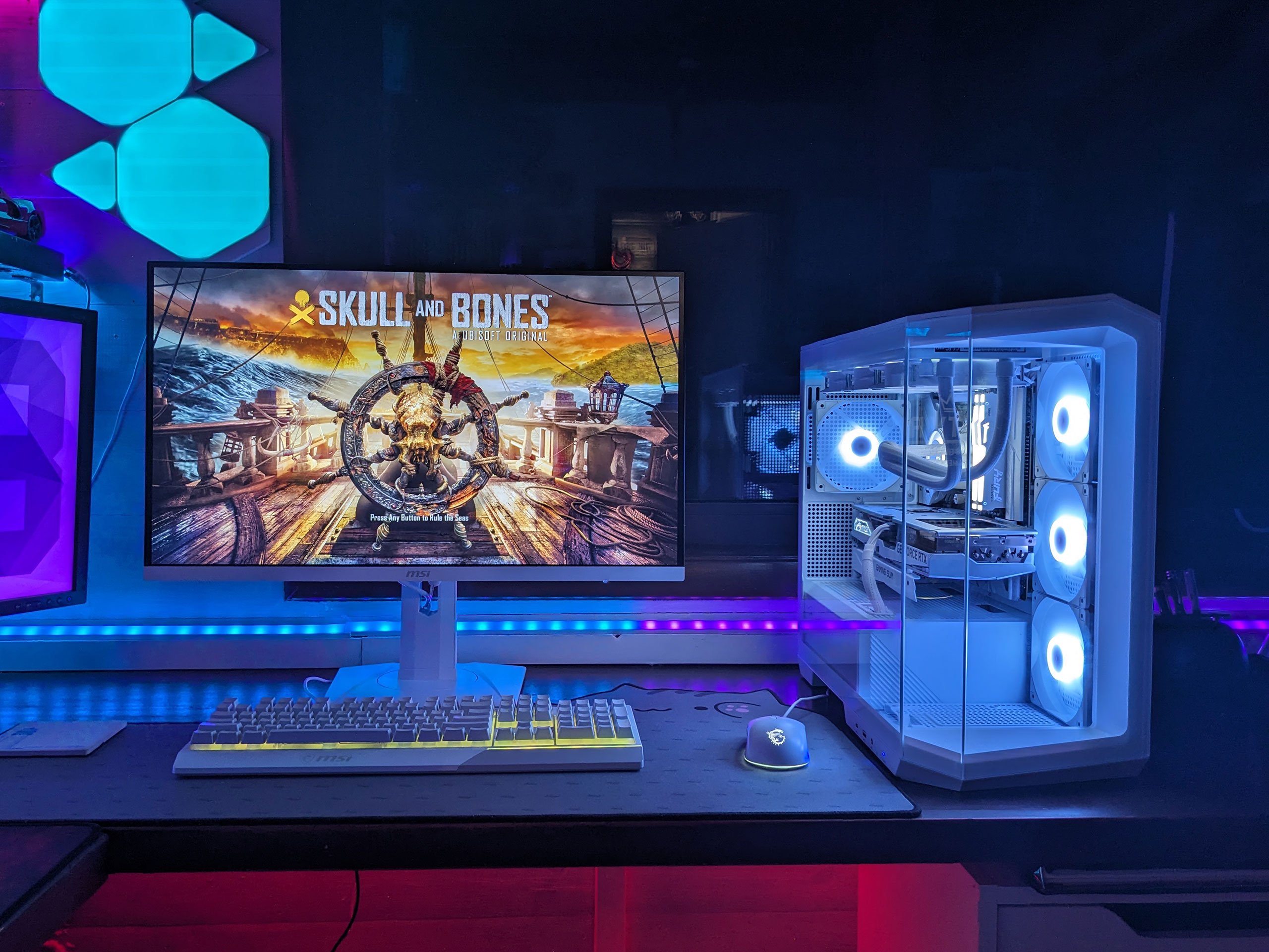 На цьому збірку ПК завершено і її доповнюють монітор MSI MAG 274QRFW, клавіатура MSI Vigor GK30 та миша MSI Clutch GM11 — все білого кольору та з підтримкою ARGB-підсвітки Mystic Light. Мабуть, якщо підходити зі сторони логіки, то використання дротової периферії в цьому випадку є просто-таки злочином, але тут вже як склалося…