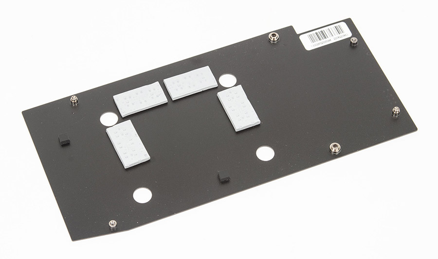 На зворотній стороні текстоліту присутній бекплейт з алюмінію, окрім підвищення жорсткості конструкції він також бере участь у відводі тепла зони VRAM. Контакт відбувається через товсті термопрокладки.