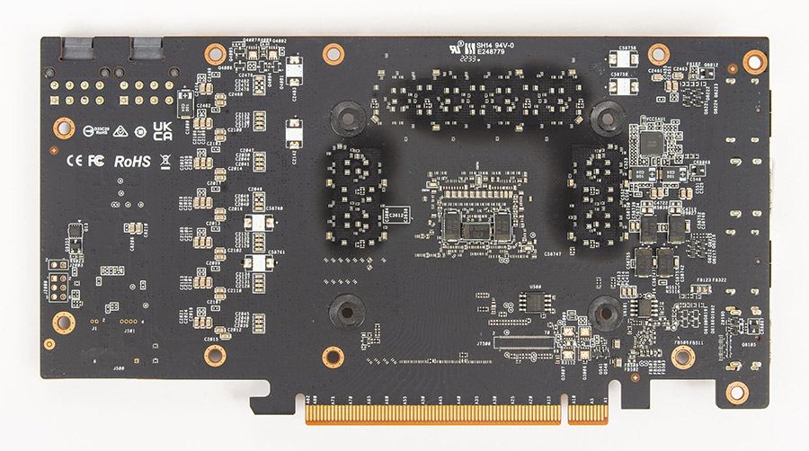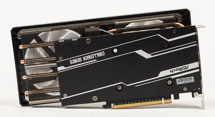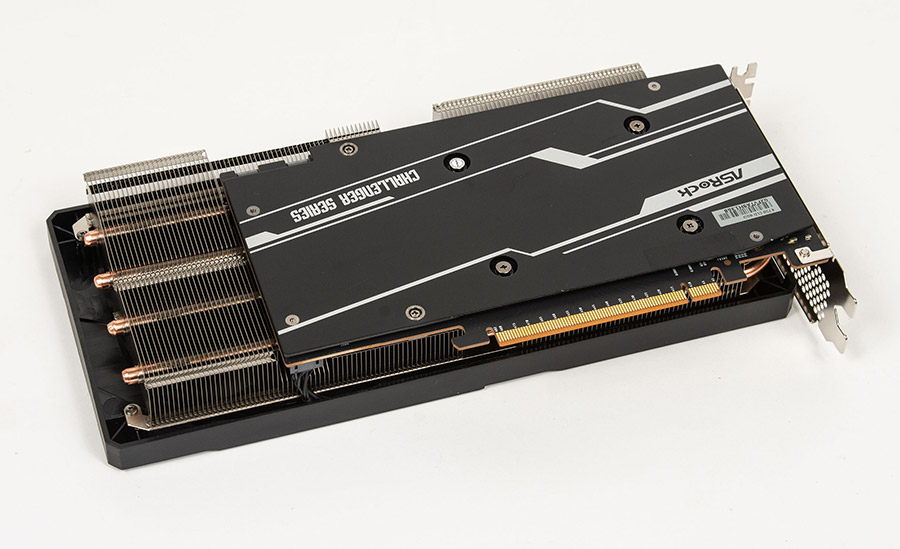 На зворотній стороні текстоліту присутній бекплейт з алюмінію, окрім підвищення жорсткості конструкції він також бере участь у відводі тепла зони VRAM. Контакт відбувається через товсті термопрокладки.
