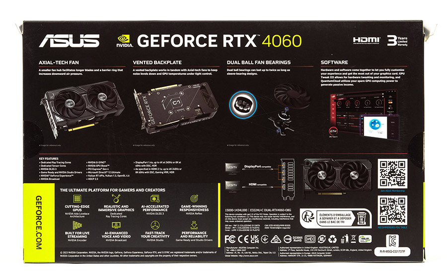 | Модель та сторінка продукту | DUAL-RTX4060-O8G |