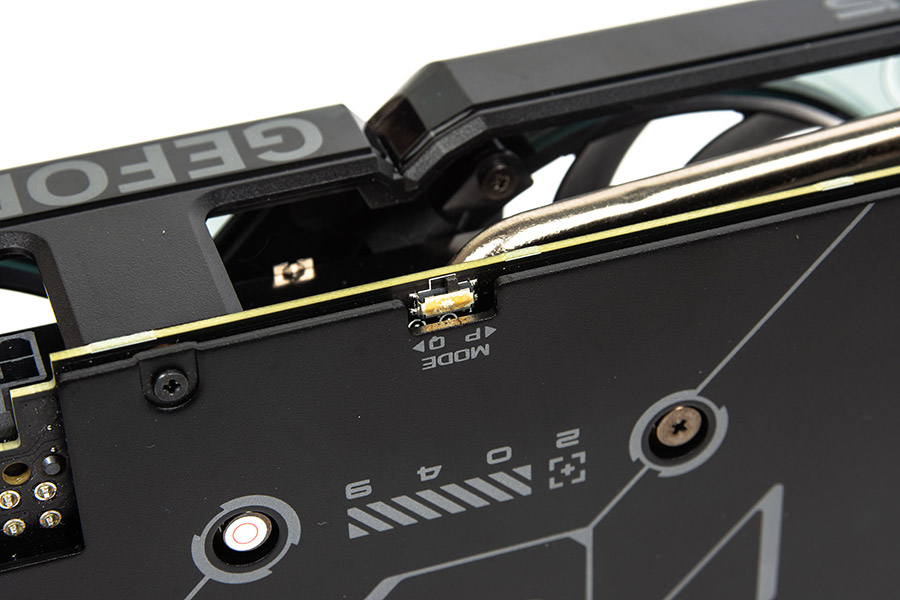 На зворотному боці є також перемикач Performance та Quiet, який дозволяє обрати продуктивний або тихий режим роботи відеокарти.