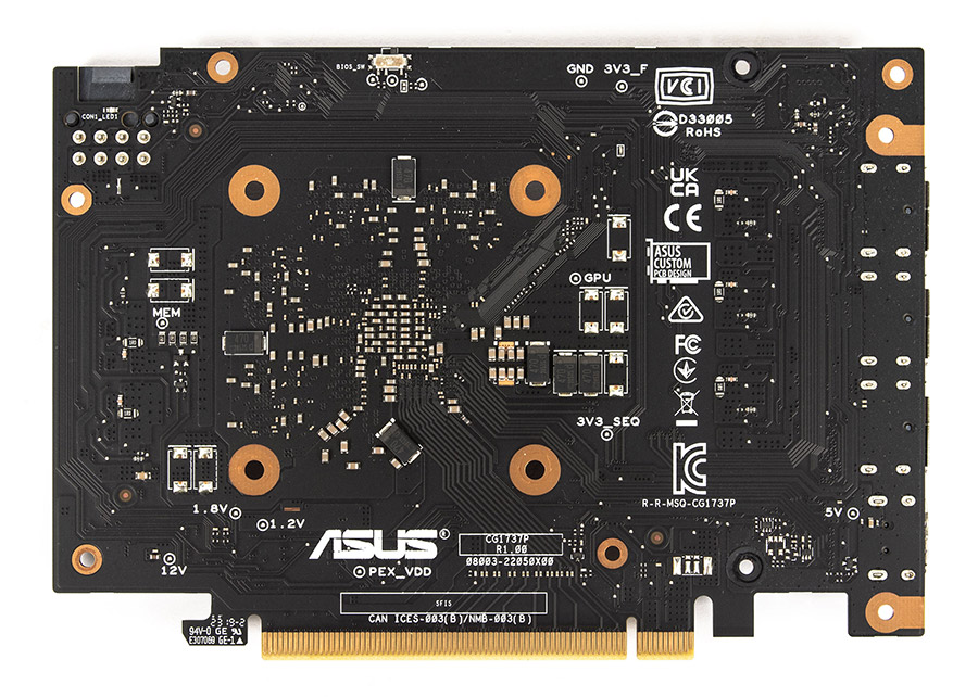 На зворотному боці графічного адаптера, з внутрішнього краю, є виріз навпроти вентилятора, який забезпечить кращу циркуляцію повітря всередині ПК.