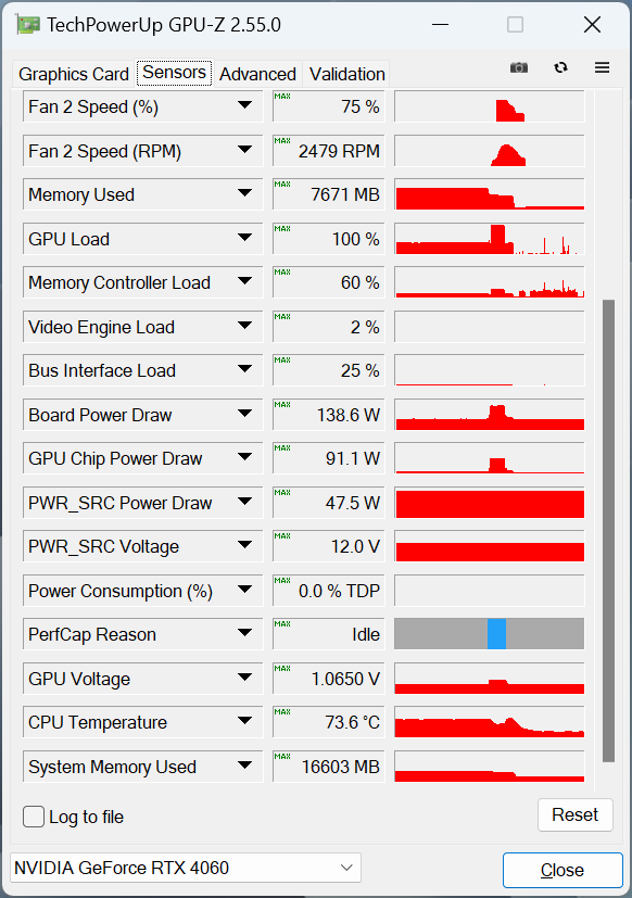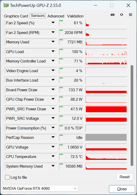 В реальних іграх частота GPU коливалася в межах 2565–2745 МГц (Star Wars Jedi: Survivor), 2730–2790 МГц (Cyberpunk 2077), або взагалі трималася на максимальному рівні (The Last of Us).