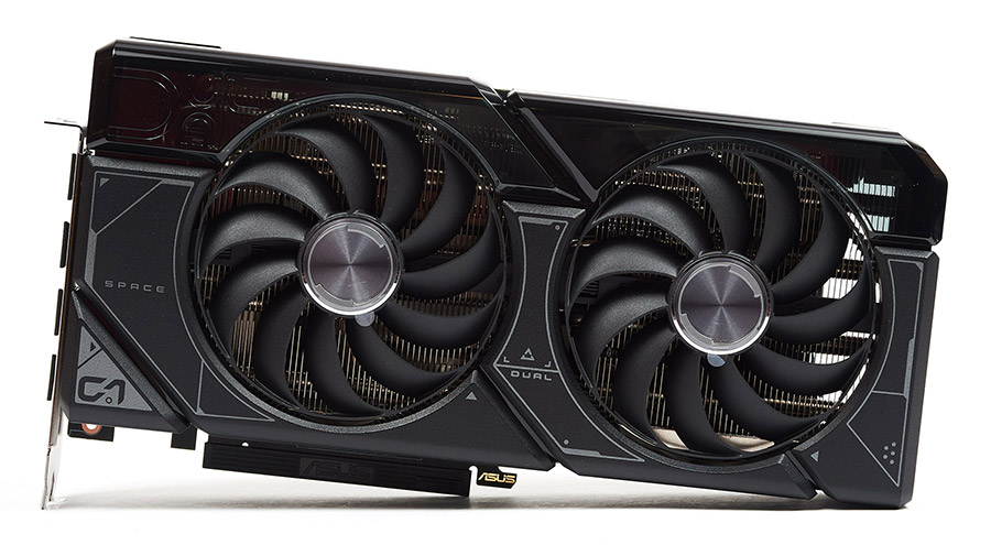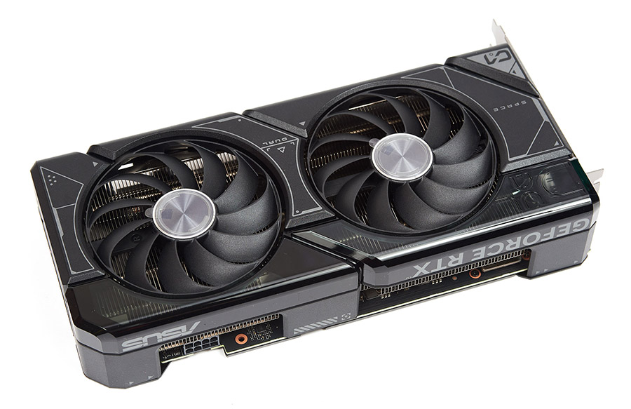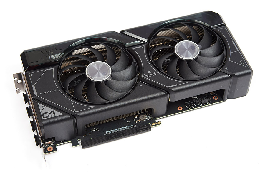 Як і вся серія RTX 40 виробництва ASUS, відеокарта має оновлений дизайн і на відміну від старих адаптерів Dual її кожух став складнішим формою.