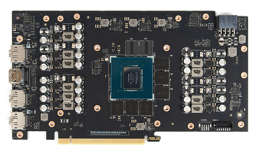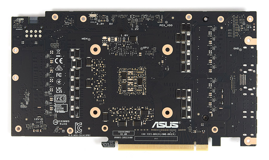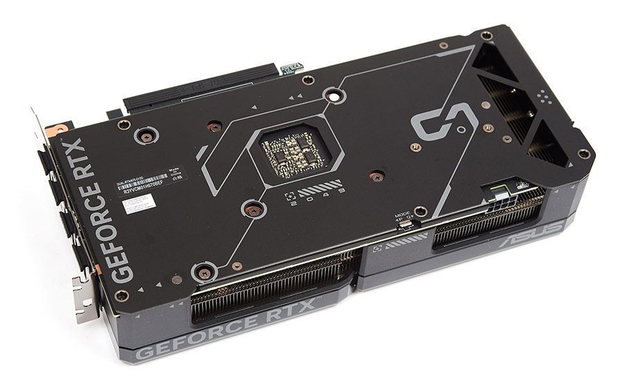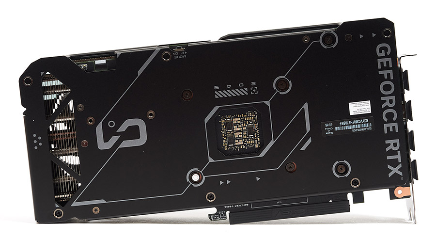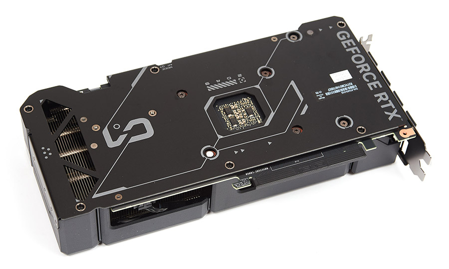 Задня планка має решітку, а також на ній встановлено три роз’єми DisplayPort 1.4a та один HDMI 2.1a. Карта займає лише 2,55 слота, що незвично на тлі адаптерів серії Strix та TUF.