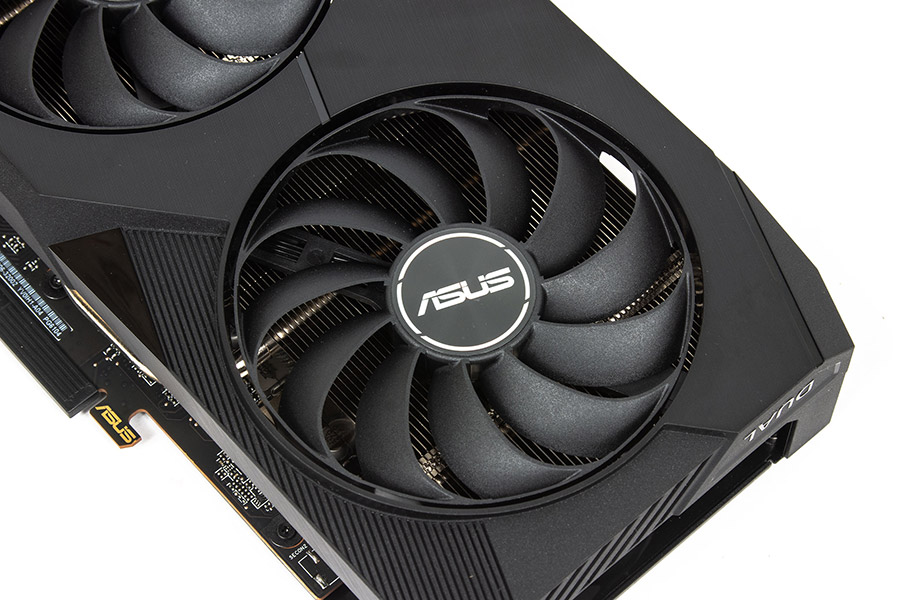 Карта має оновлений дизайн серії Dual. Виглядає вона спокійно з похилими лініями та без агресивних форм, RGB-елементів не передбачено. У минулого покоління графічних адаптерів ще була металева вставка, але тут від неї вже відмовилися.