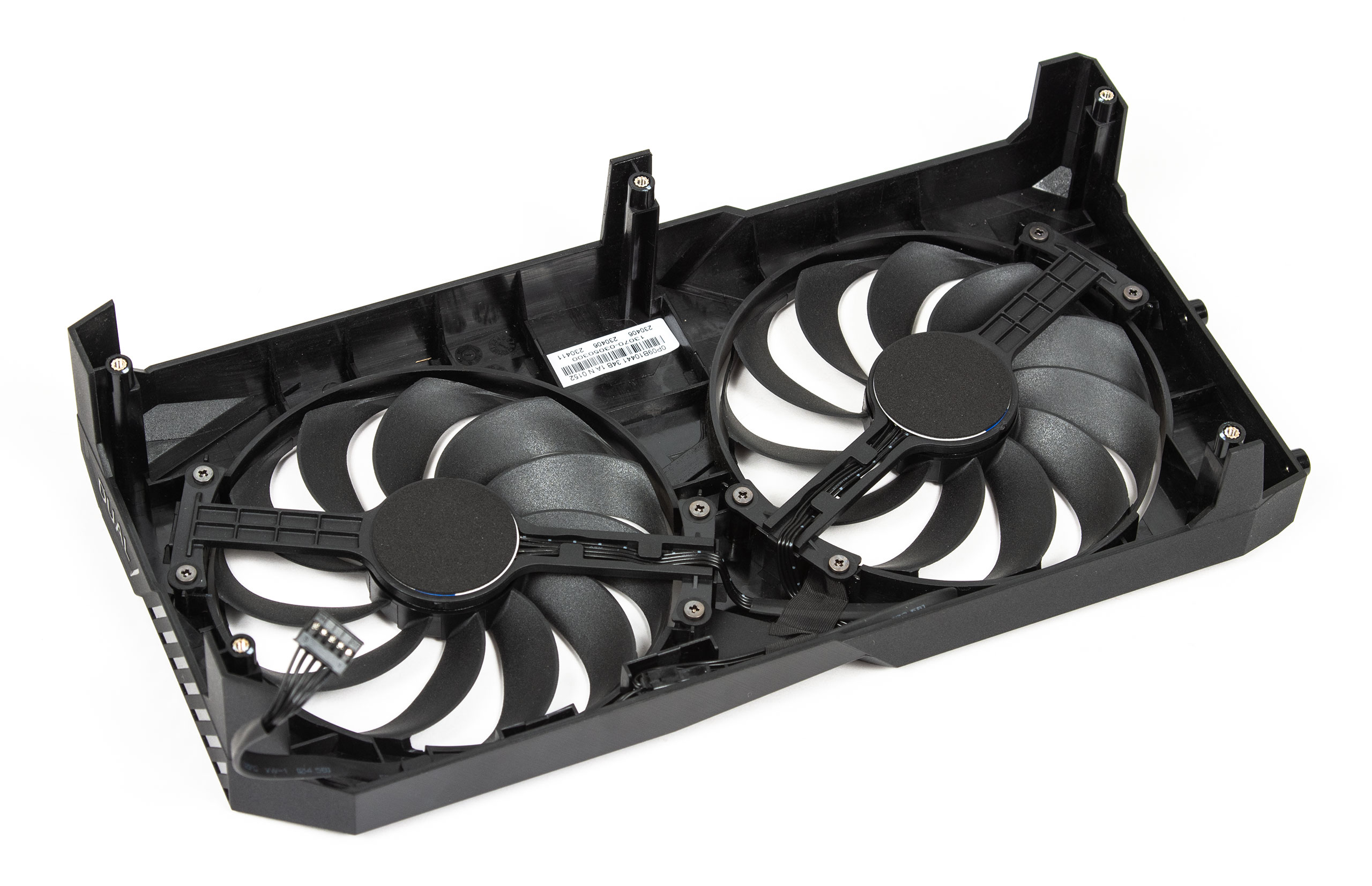 Діаметр вентиляторів дорівнює 95 мм, вони мають 11 лопатей, які з’єднані кільцем на кінцях, та дві кулькові вальниці, що повинно збільшити їх термін експлуатації. В режимі простою та при слабкому навантажені вони не працюють, а вже після підвищення температури кристала до 55 градусів починають обертатися. В цілому вони тихі, але при максимальному навантаженні та нагрівання чипа їх швидкість може підійматися до 2000 об/хв і вони вже добре відчуваються.