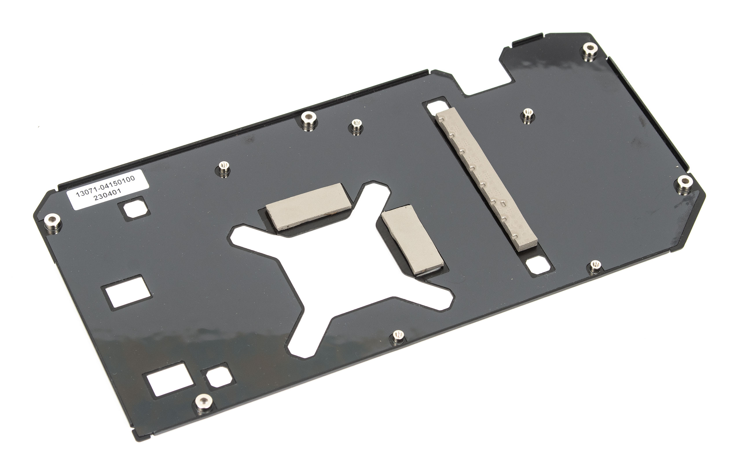 Задня пластина крім захисної та декоративної функції несе ще й охолоджувальну, для чого присутні товсті термопрокладки навпроти гарячих зон.