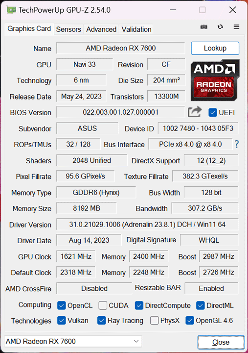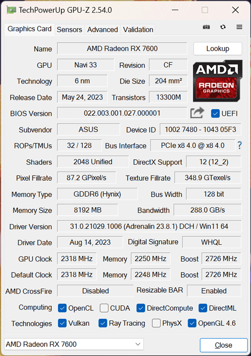 ASUS DUAL-RX7600-O8G