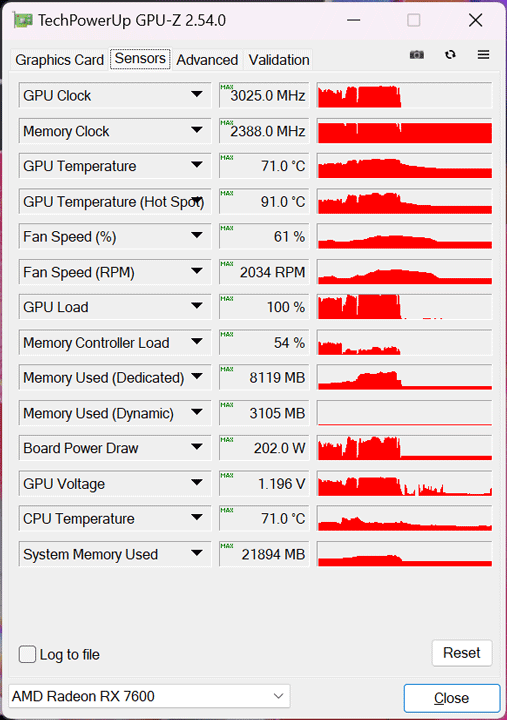 До температури чипа додалося два градуси, але швидкість вентиляторів теж зросла і могла вже сягати 2034 об/хв.