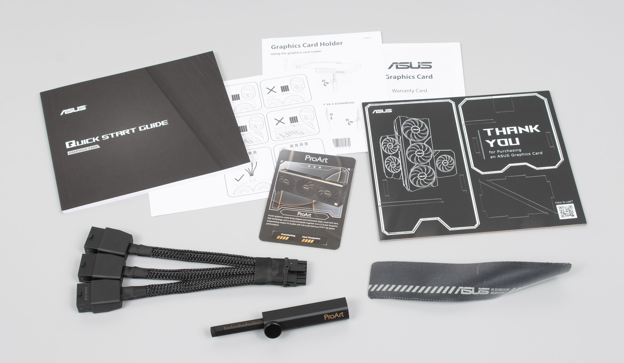 Стійка для підпирання карти, щоб вона не провисала, на відміну від продуктів TUF та Strix, виконана у чорному кольорі та має логотип серії Pro Art. Її також можна використовувати як викрутку, достатньо перевернути стрижень та зафіксувати його гвинтом.