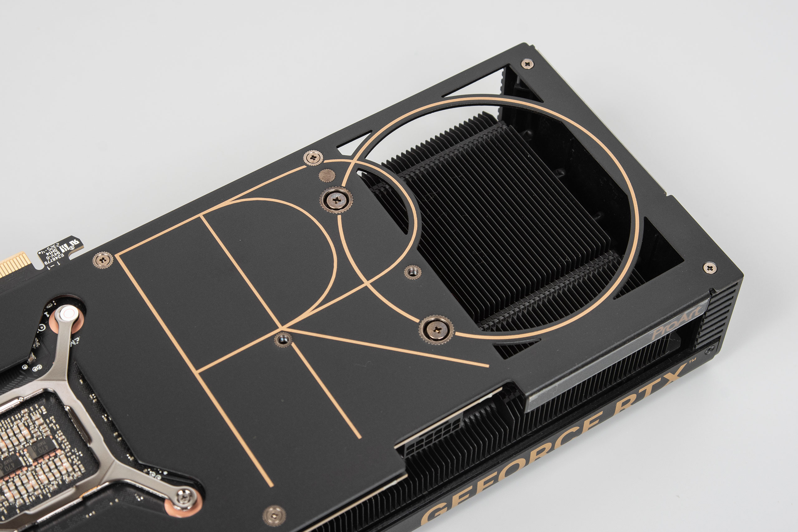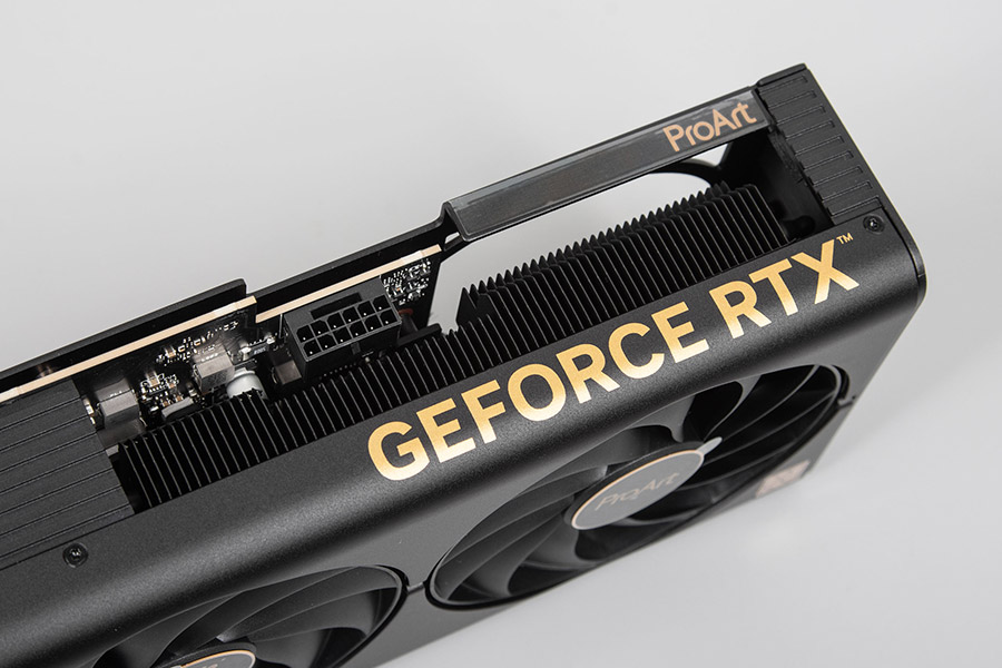 Округлі ребра присутні лише на кожусі системи охолодження, тоді як задня пластина пряма та рівна. На відміну від продуктів ігрових серій PROART-RTX4080-O16G невисока й тонкіша, має довжину 30 см та займає лише 2,5 слоти, що дозволяє встановити її в відносно невеличкі корпуси.