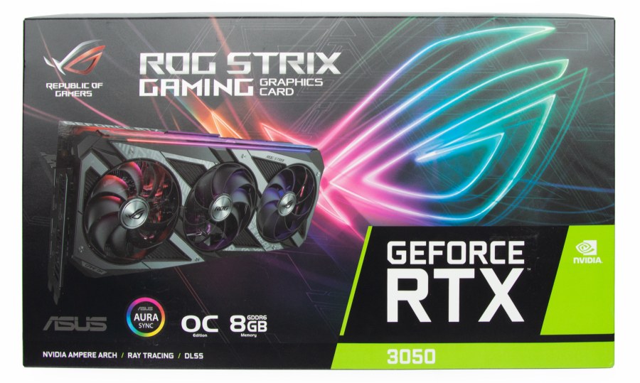 Згідно з чутками Nvidia незабаром представить спрощену версію GeForce RTX 3050 із 4 ГБ відеопам'яті. В її основі буде економніший процесор GA107. Поки що оцінимо можливості повноцінного варіанту GeForce RTX 3050 у виконанні ASUS. Розглянемо топовий варіант з лінійки ROG Strix з потужним охолодженням та підвищеними частотами, перевіримо розгінний потенціал та порівняємо зі старшими відеокартами AMD та Nvidia.