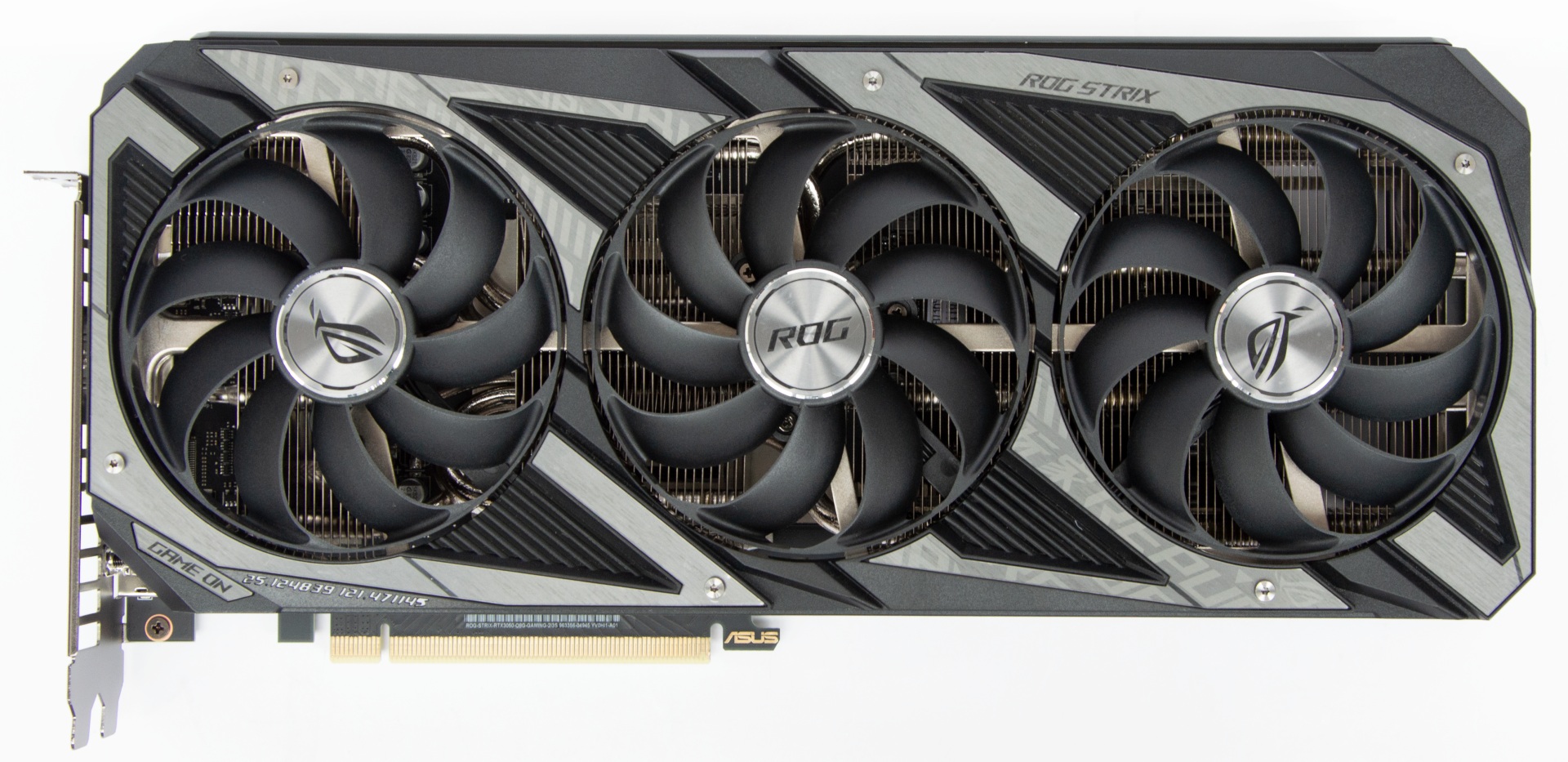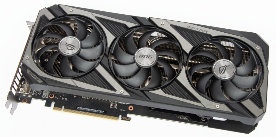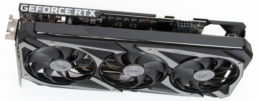 Візуально GeForce RTX 3050 не відрізняється від ASUS ROG-STRIX-RTX3060-O12G-GAMING, це масивний відеоадаптер довжиною 30 см.