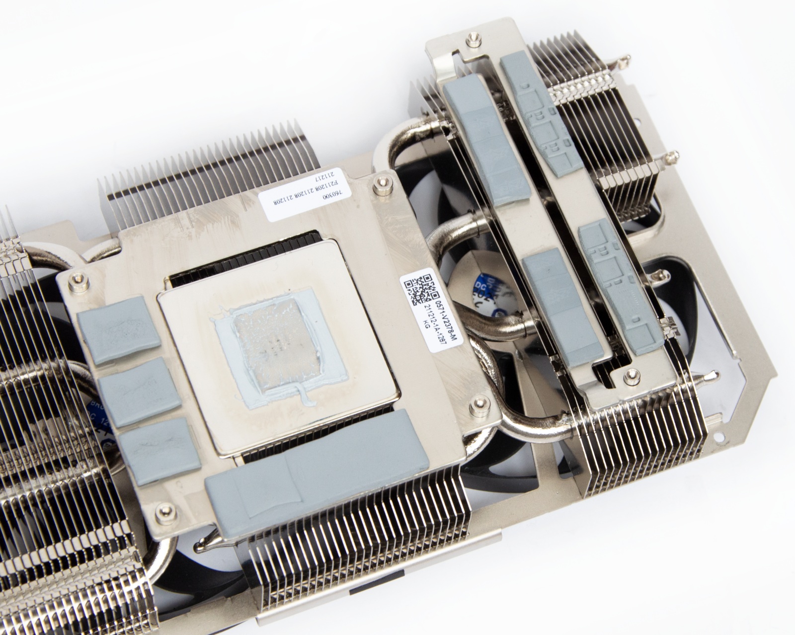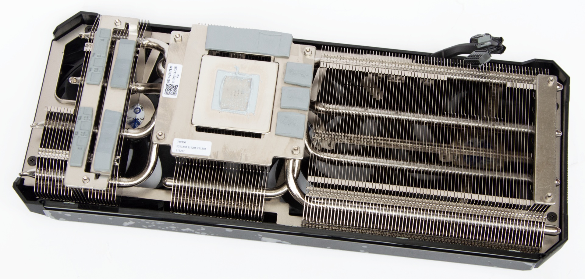 Тепло від графічного процесора відводиться через рівну відполіровану основу, навколо якої знаходиться площинка для контакту з мікросхемами пам'яті.