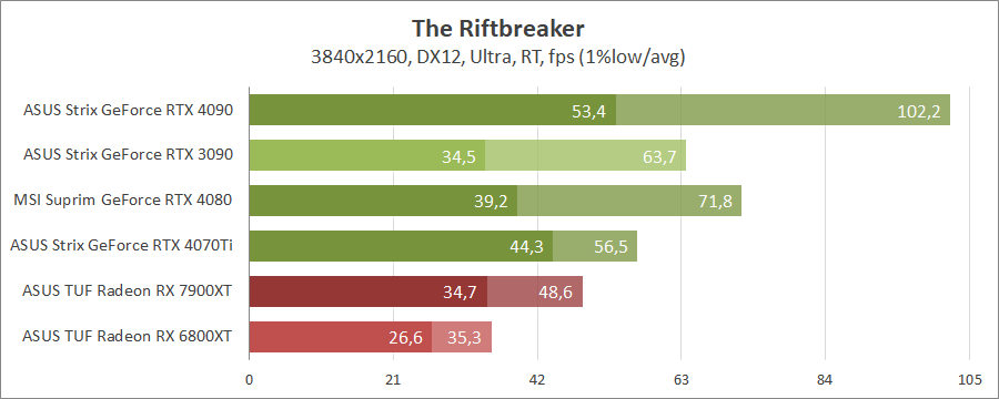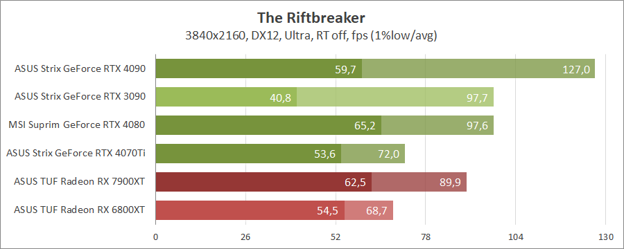 Поки відбувалося тестування ігри Cyberpunk 2077 та The Riftbreaker отримали оновлення (актуально для всіх карт крім Strix GeForce RTX 3090), також оновлення отримали Assassin’s Creed Valhalla та Far Cry 6 (актуально для всіх карт крім Strix GeForce RTX 3090). І це треба враховувати порівнюючи відеокарти.