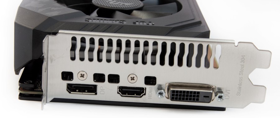 На задню панель винесено три роз'єми для виведення зображення: DisplayPort, HDMI, DVI-D.