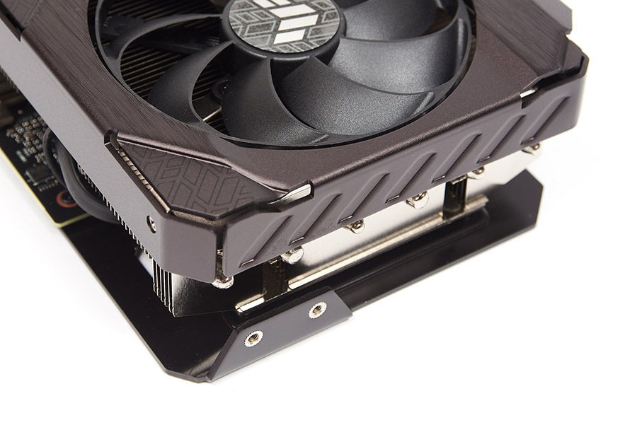Карта відносно велика, довжиною 30 см та висотою майже 15 см, що дорівнює розмірам адаптерів високого рівня минулого покоління. Такі ж самі габарити мають деякі нові продукти серії TUF.