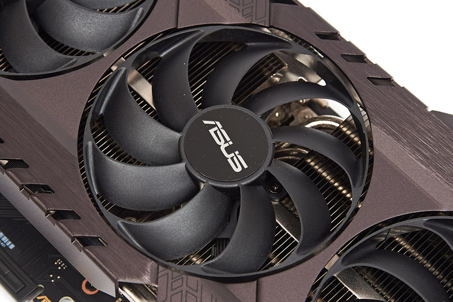 Активне охолодження відеокарти виконується трьома 90-мм вентиляторами ASUS Axial-tech з дев’ятьма лопатями, які з’єднані між собою кільцем, та двома кульковими вальницями. Вони починають обертатися лише після того, як графічний процесор нагріється до 50 градусів.