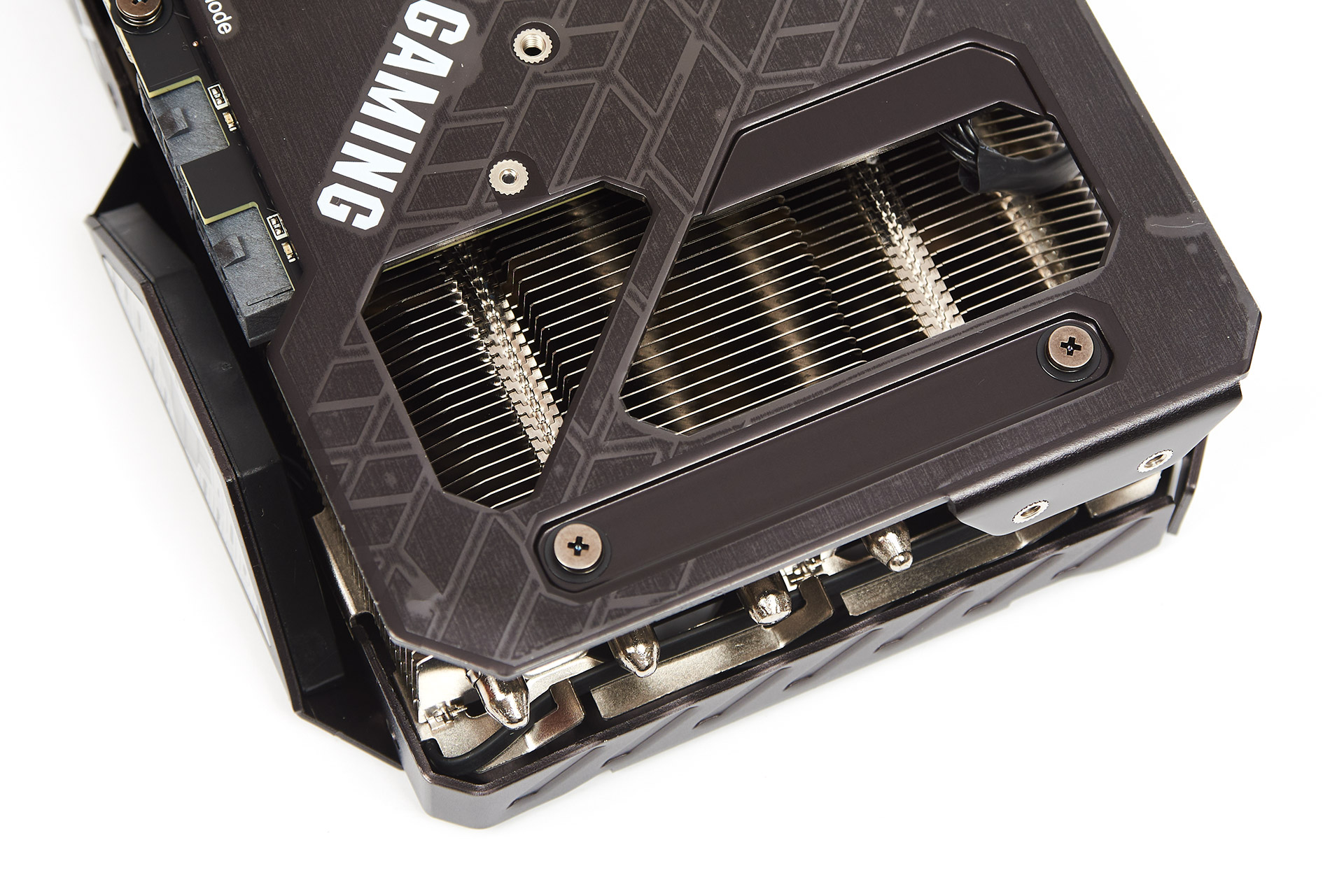 Радіатор дуже масивний та складається з двох секцій тонких алюмінієвих пластин, одну з яких пронизують три теплових трубки, а іншу — шість. В місцях знаходження чипа та силових елементів напаяні мідні пластини. Контакт з GPU відбувається через термопасту, а із силовими елементами — через товсті термопрокладки.