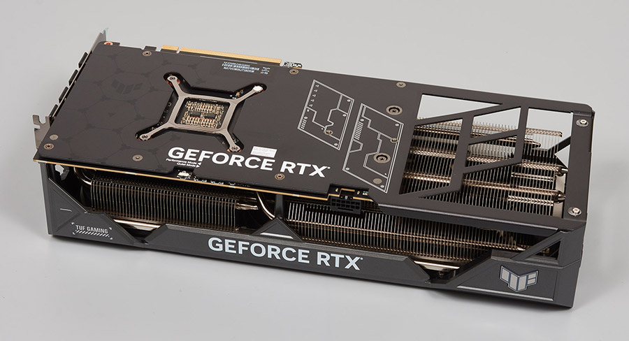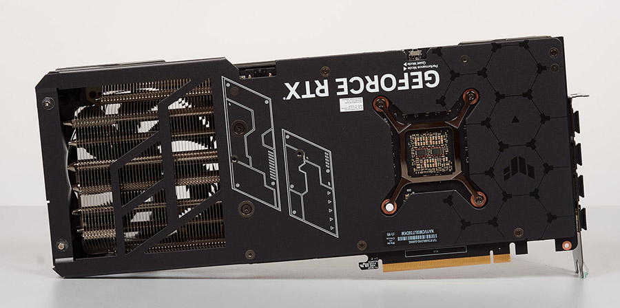 Система охолодження ASUS TUF Gaming GeForce RTX 4080 OC також складається з трьох частин: литого кожуха, радіатора та штампованої задньої пластини.