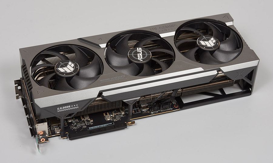 Як бачимо, це точна копія TUF GeForce RTX 4090, яку ми розглядали раніше. Навіть роз’єми на задній панелі мають таку саму кількість.