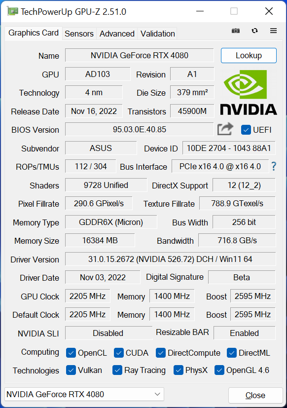 | Модель та сторінка продукту | TUF-RTX4080-O16G-GAMING |