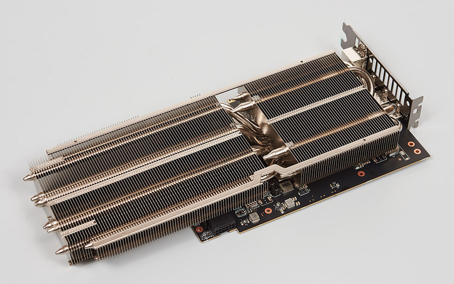 Досягається це завдяки литому товстому кожуху з алюмінію, лише штампована задня панель псує увесь загальний вигляд і здається, наче вона не з цієї карти.