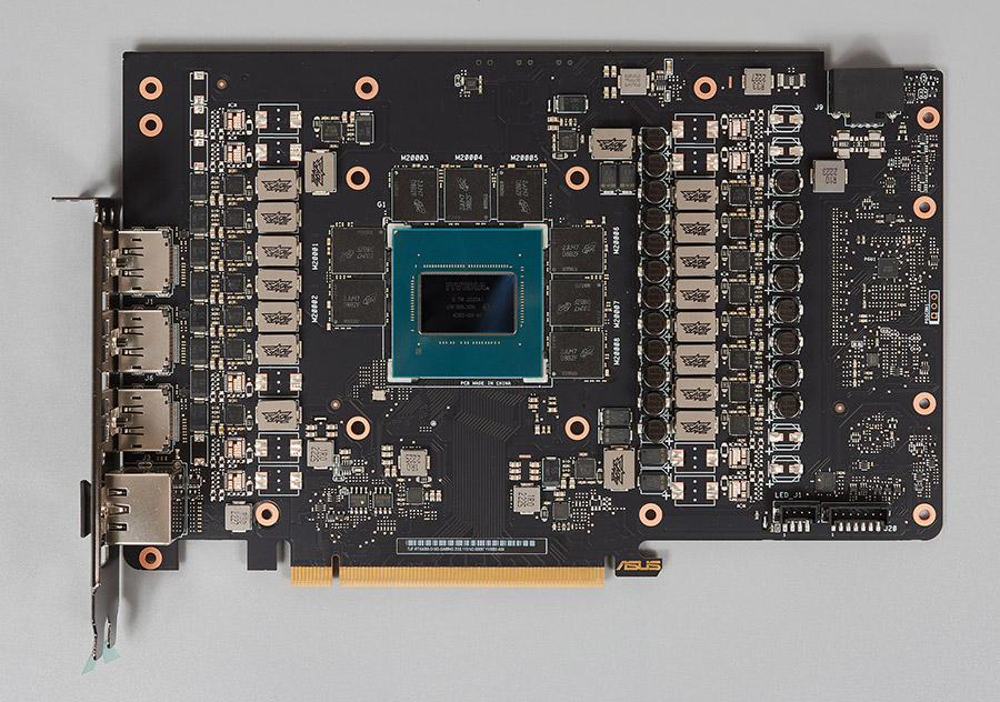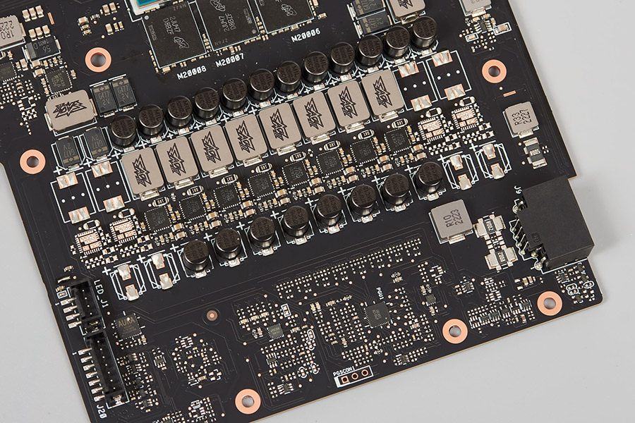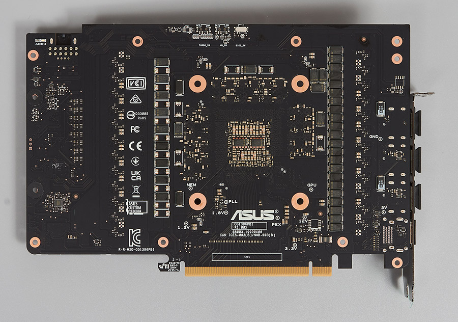 Друкована плата така сама, як і у TUF RTX 4090, за винятком наявності та розміщенням деяких елементів.