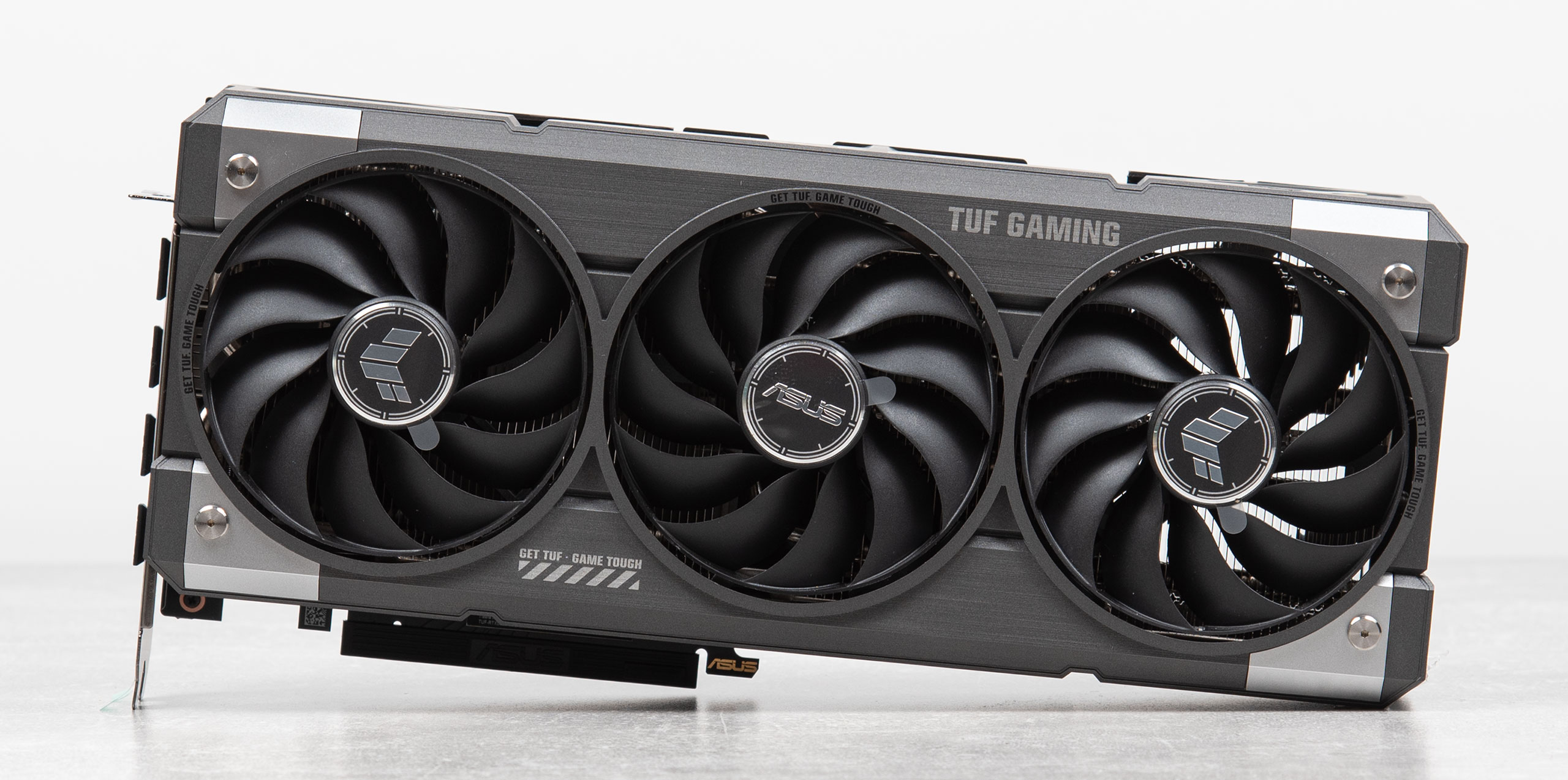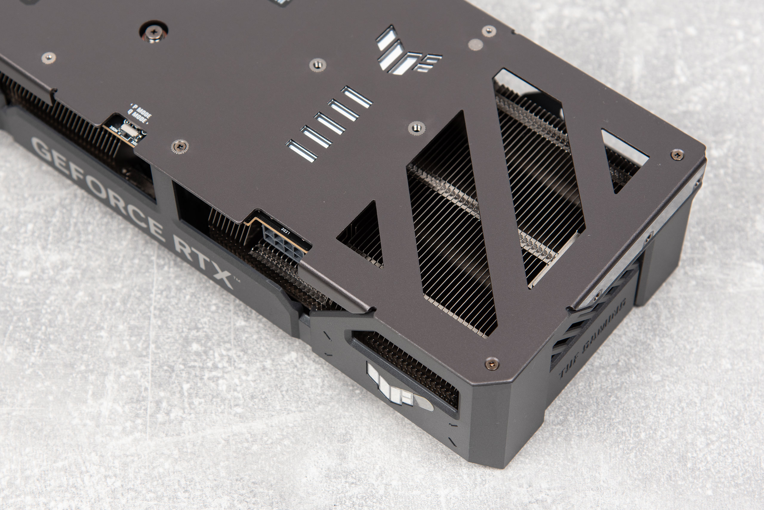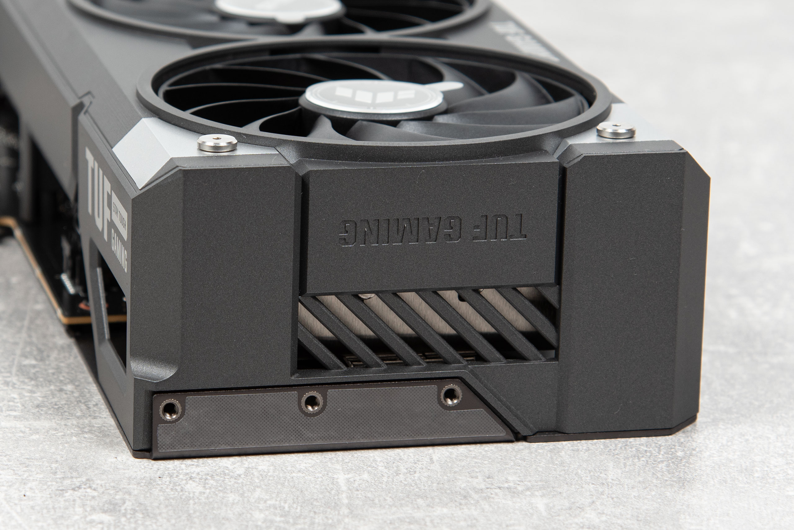Карта належить до серії TUF Gaming, тож повністю повторює дизайн всіх сучасних адаптерів цієї лінійки. В них сірий пластиковий кожух системи охолодження має металеві вставки, а задня пластина виконана з алюмінію, тільки на ній тепер зникла намальована перфорація.