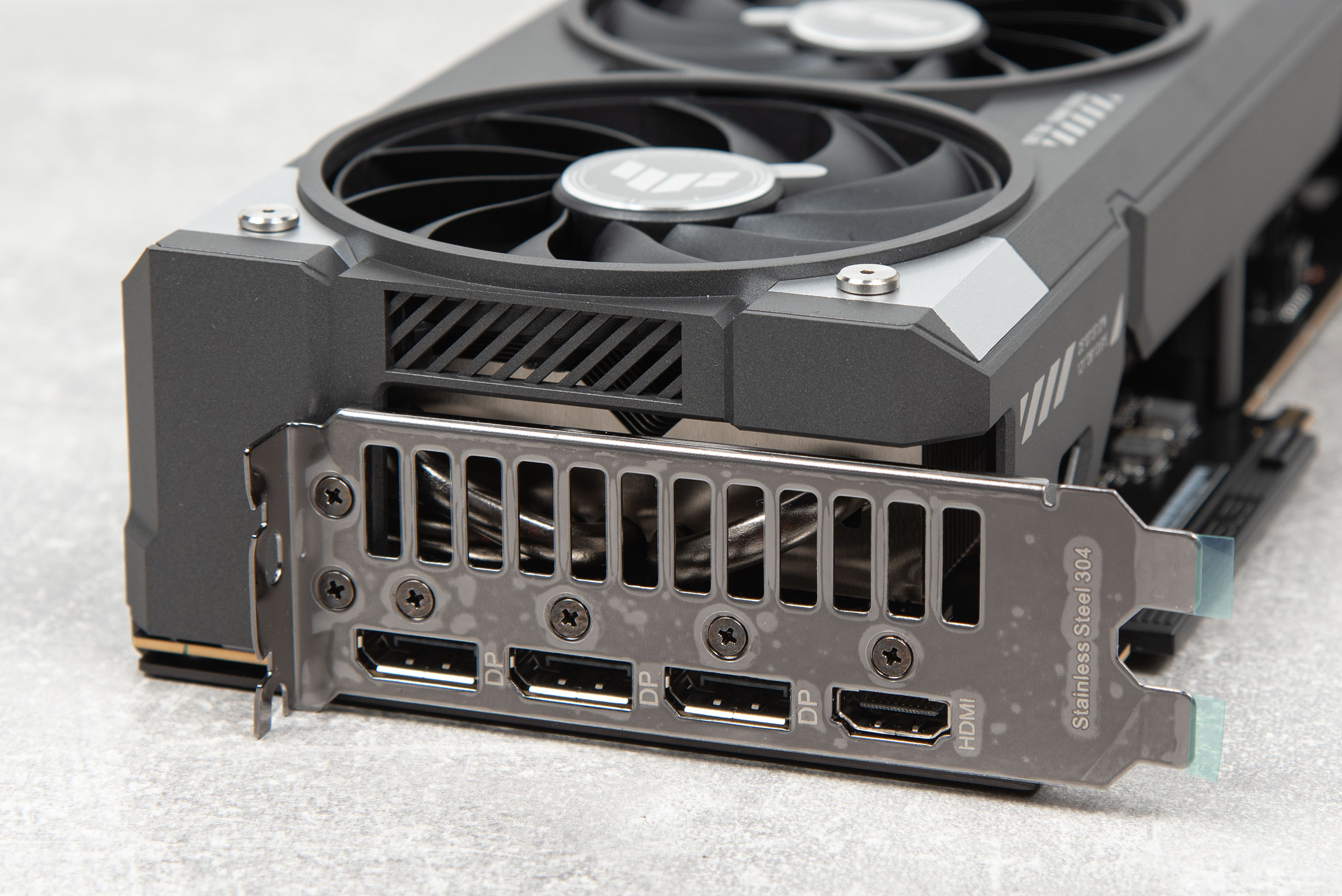 Для під’єднання моніторів є три роз’єми DisplayPort 2.1b та один HDMI 2.1b. На внутрішньому торці присутні отвори з різьбою для встановлення додаткового приладдя. Виконані вони у задній пластині.