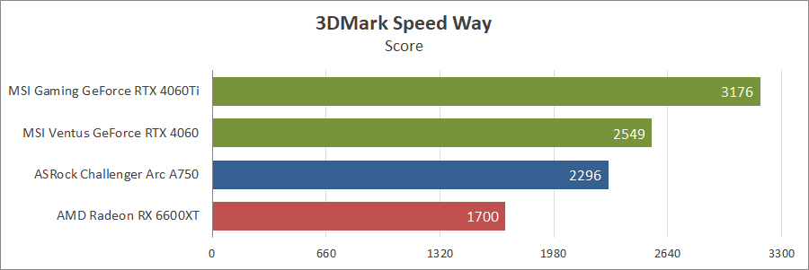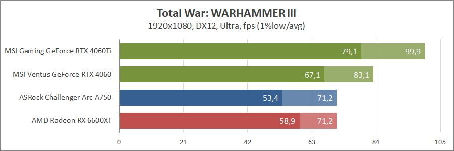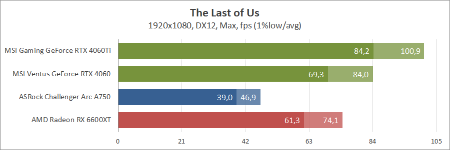 В синтетичному пакеті Arc кращій за всіх та зазіхає на місце GeForce 4060 Ti, але у свіжому тесті він здав позиції молодшому «зеленому» опоненту.