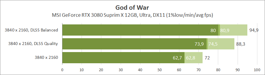Докладний аналіз особливостей MSI GeForce RTX 3080 Suprim X 12G буде в окремому огляді. Поки ми поговоримо про потенціал новинки у God of War при високій роздільній здатності, порівняємо результати в різних режимах DLSS.