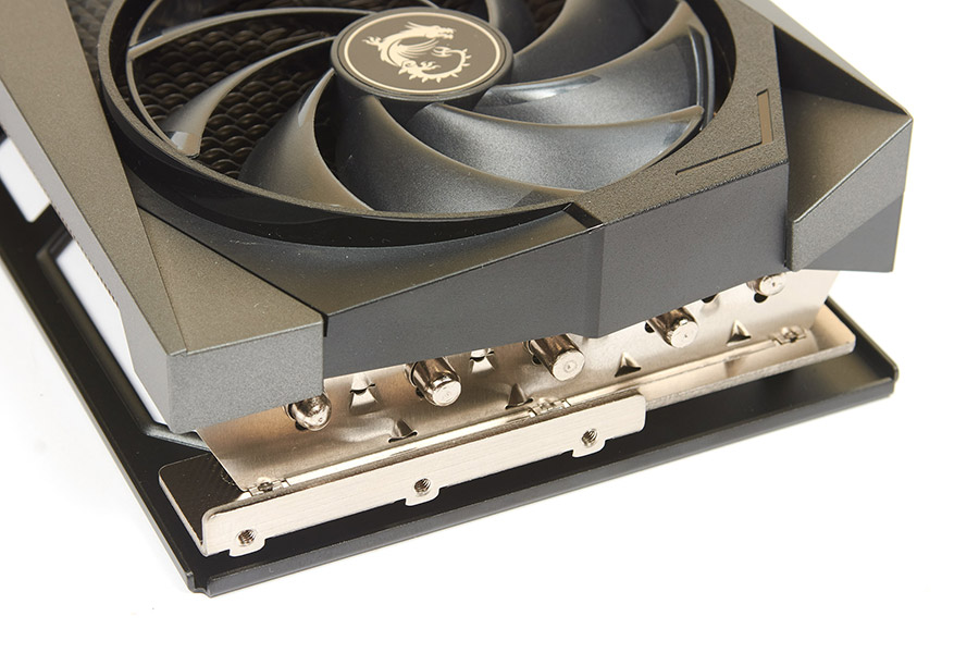 Радіатор системи охолодження виконаний з двох секцій тонких алюмінієвих пластин, одну з яких, саму велику, пронизує шість теплових трубок, а іншу — лише три. На квадратний профіль трубок напаяна мідна пластина, яка контактує з GPU через термопасту, а з пам’яттю — термопрокладки. Ще декілька пластинок напаяно в місцях розміщення силових елементів, які також охолоджуються через термопрокладки.