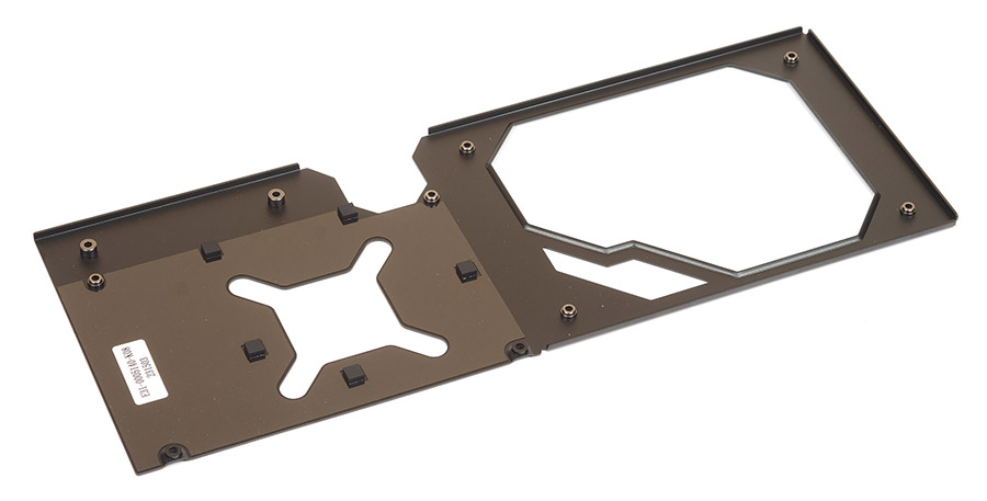 Зі зворотного боку є великий отвір в пластині, майже на пів карти, через який проходить повітря від вентиляторів.