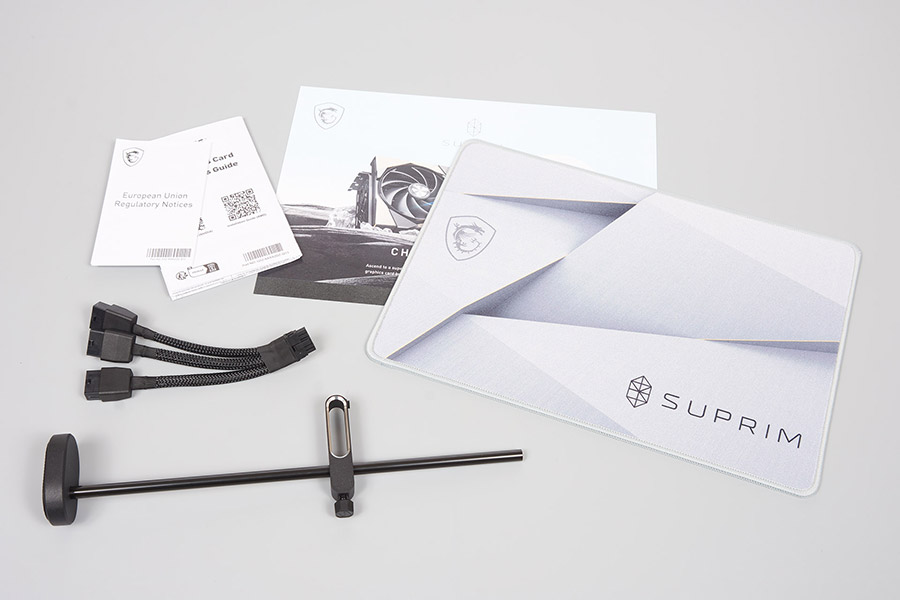 Кожух зі шліфованого алюмінію має пластикові вставки, одна з таких є й на зворотному боці. Задня пластина також з алюмінію, на ній є фірмовий логотип серії Suprim з підсвіткою та отвори для проходження повітря від крайнього вентилятора.