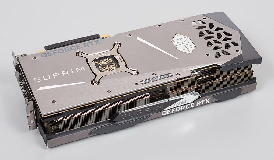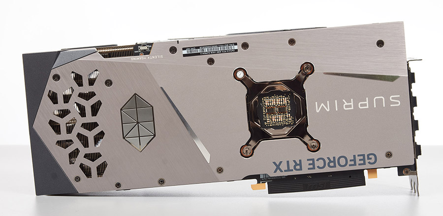 Кожух зі шліфованого алюмінію має пластикові вставки, одна з таких є й на зворотному боці. Задня пластина також з алюмінію, на ній є фірмовий логотип серії Suprim з підсвіткою та отвори для проходження повітря від крайнього вентилятора.