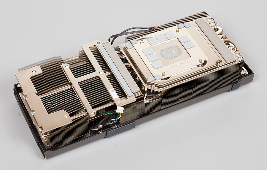 Масивна система охолодження складається з трьох частин, а саме радіатора з вентиляторами, невеличкої рамки та задньої пластини.