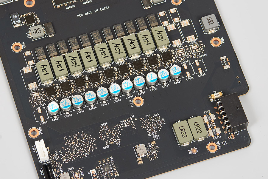 Перетворювач живлення чипа налічує 18 фаз, тоді як для пам’яті відведено всього три. Використовуються DrMOS від NCP.