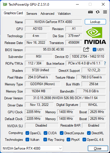 | Модель та сторінка продукту | GeForce RTX 4080 16G Suprim X |